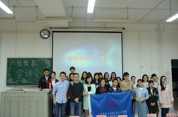 宣讲会在一段激昂的联合国大会的视频资料中开始,学院分团委书记赵阳老师开场致辞:“模联能培养同学们良好的公民意识、国际化的视野、批判性思考能力、强大的社交能力和学习能力。虽然模联在广西起步较晚,但相信通过大家的努力,一定能在广西这片沃土开出最美的花朵”。马克思主义学院模联协会主席尧磊同学向在场的同学们介绍了模联的发展历程,以及将来“八桂大学生模联协会”的发展规划。来自桂电的模联代表为大家分享了参加湖南潇湘模联大会的经历以及收获,鼓励爱好者们勇敢挑战自己。
