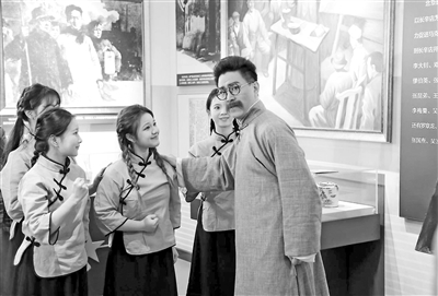 课堂上,师生们不是观众。他们身着那个年代的服装,走在先烈的照片和真实的文物中间。他们时而是历史现场的见证者,时而又是历史人物本身。师生共同演绎,将思政课转变为一次“穿越”历史的旅程,将“在场馆学习历史”转变为“在场馆还原历史”。