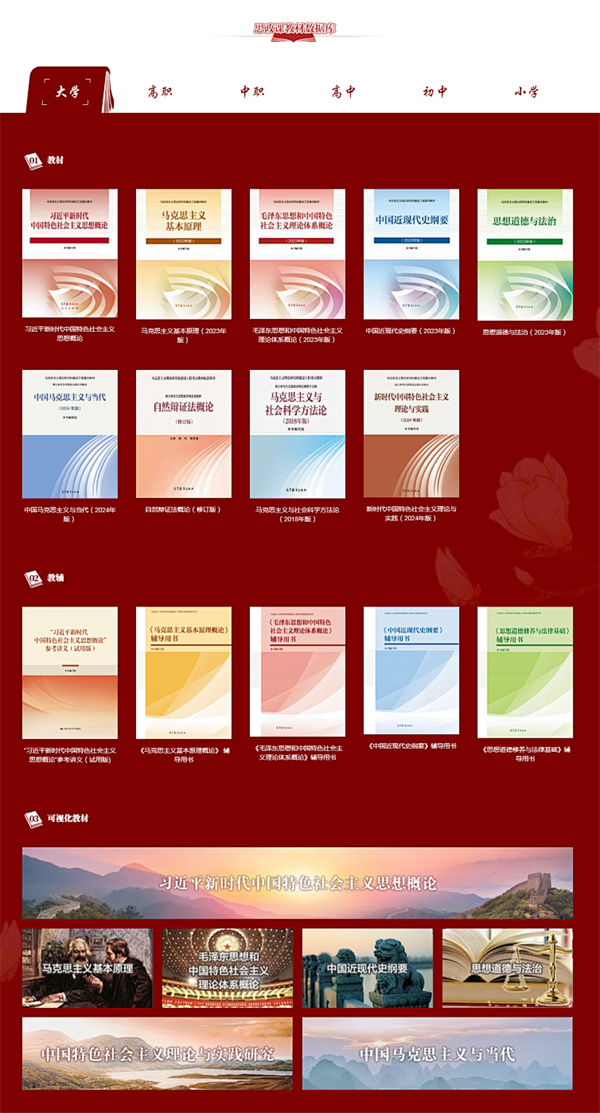 由中国人民大学建设的国家教材建设重点研究基地(高等学校思想政治理论课教材研究)网站(http://zx.bjcipt.com/jcjd/)同步上线。