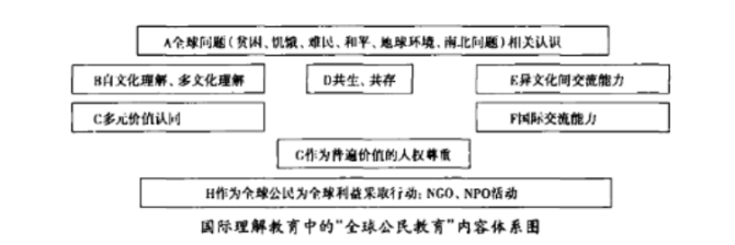 关于“全球公民教育”的内容,不少论著均有提及。其中,中村耕二提出的全球公民教育的内容体系较有代表性6(参见下图)。
