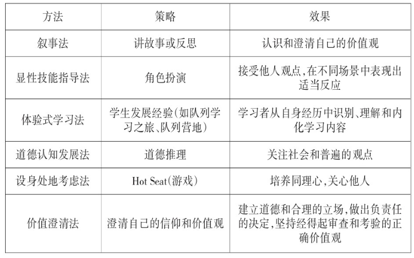 表2品格与公民教育课程的教学方法与策略