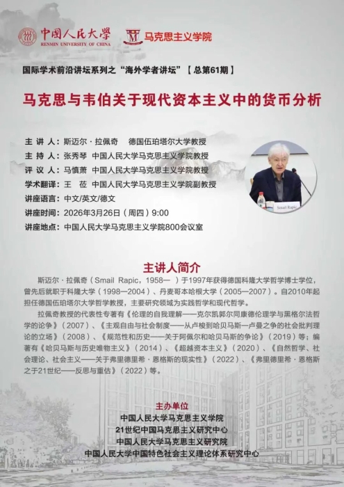讲座预告丨人大马院国际学术前沿讲坛系列之“海外学者讲坛”第61期