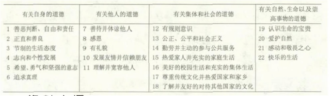 表1小学阶段道德课程具体的道德项目